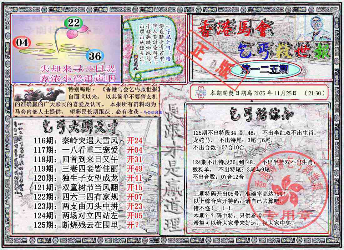 1625 亚视内幕综合报 1626 伯乐相马经 1627 马经经版料 1628 马经救世报