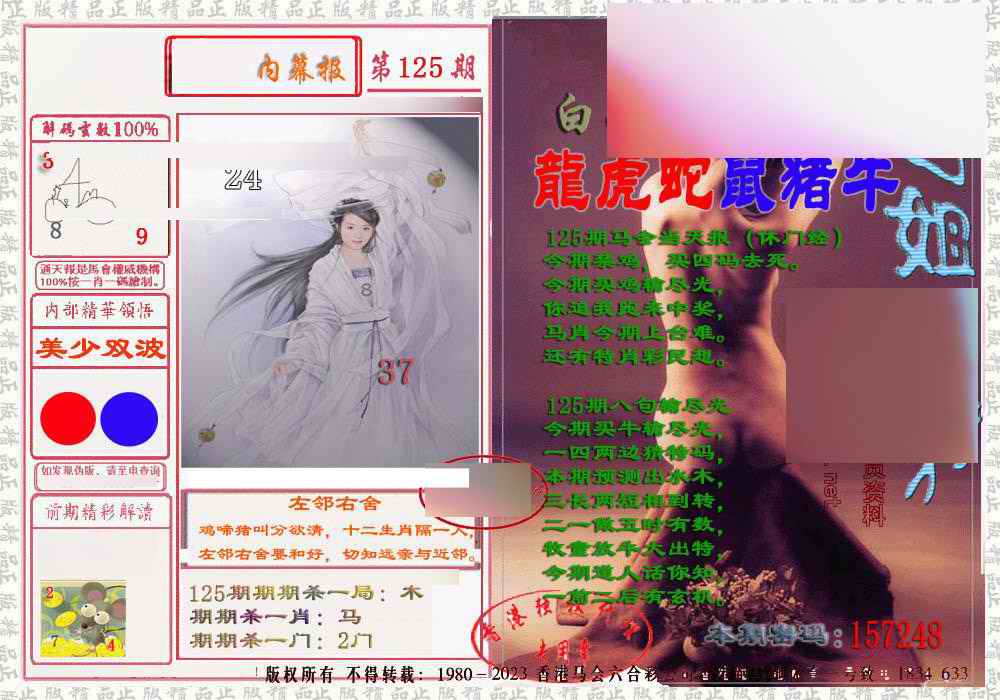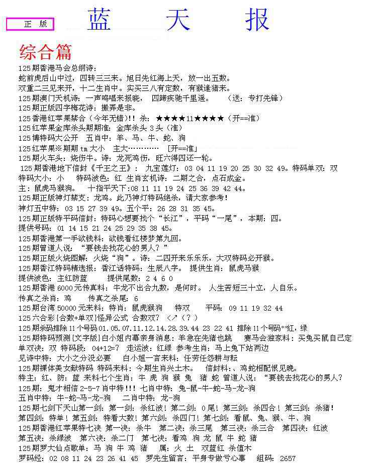 1581 精准传真报 1582 新天线宝宝内幕报 1583 当期狗仔版 1585 白姐泄密