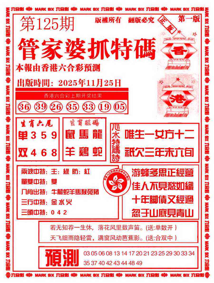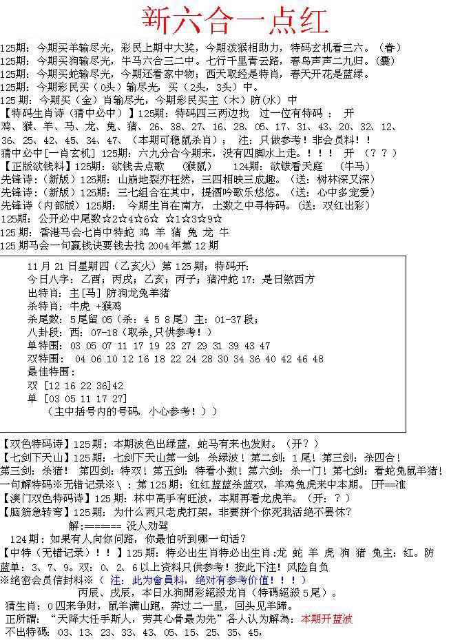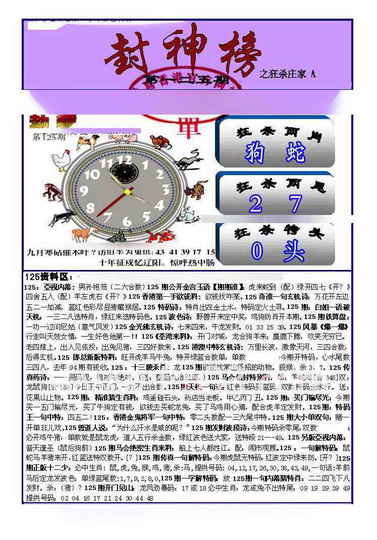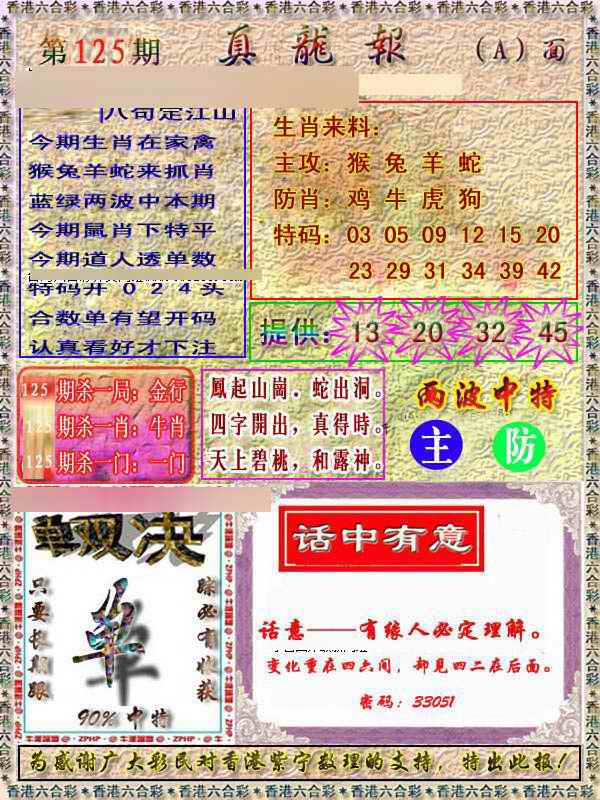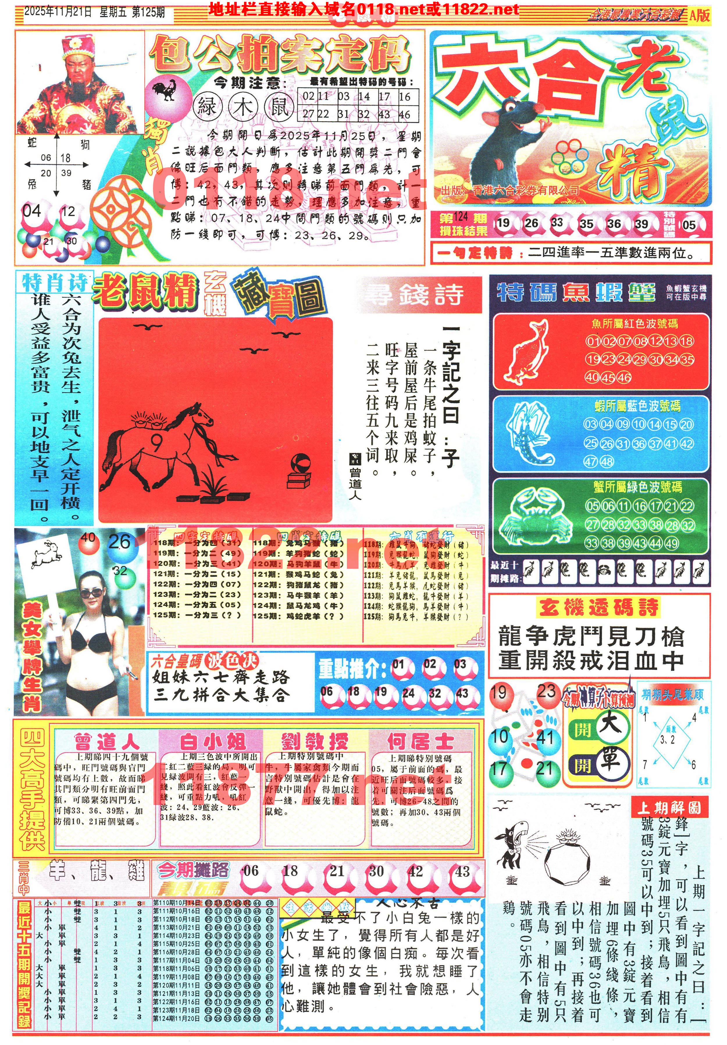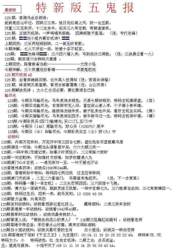 063 六合禅机A 064 六合禅机B 069 特 新 报A 070 特 新 报B