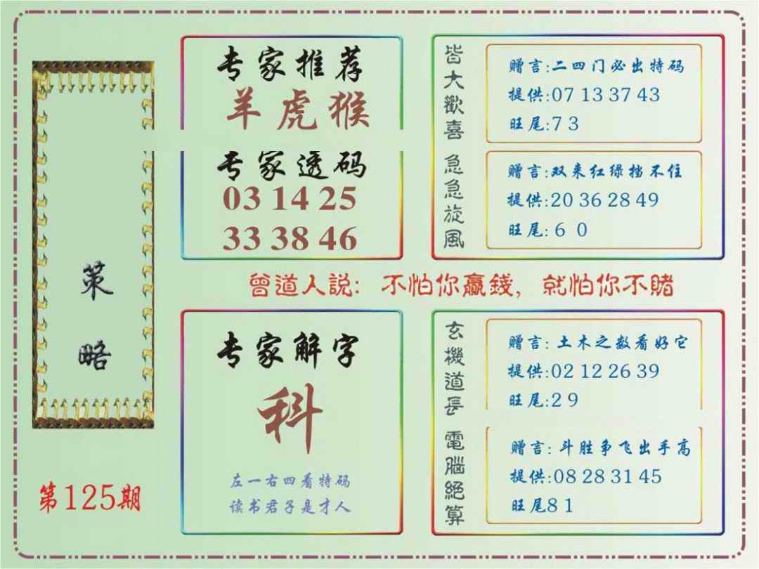1672 六合黑庄 1673 马经霸王 1674 佛祖救世报 1675 关公砍杀