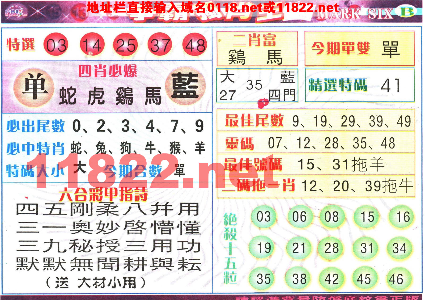 441 六合解霸A 442 六合解霸B 445 白姐特新刊A 446 白姐特新刊B